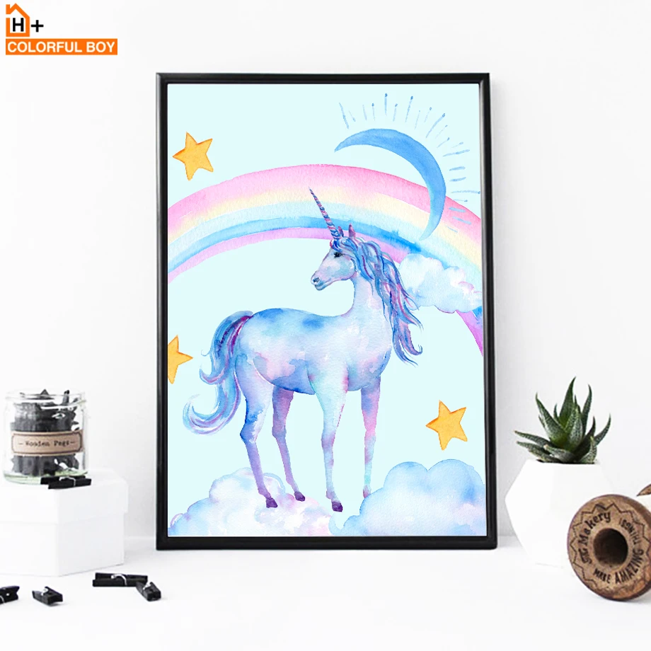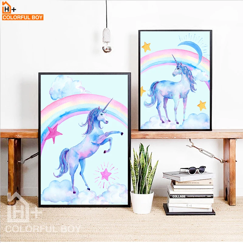 COLORFULBOY Nordic Unicorn Rainbow Bintang Kanvas Lukisan Wall Art ...