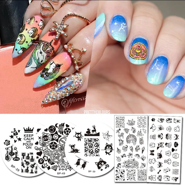 5 Pcs Lucu Stamping Plat Template Cat Dog Unicorn Cat Bintang ...