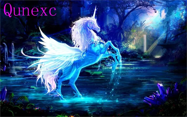 Qunexc Art gambar unicorn kuda air hutan sinar biru 24x36 inci art ...