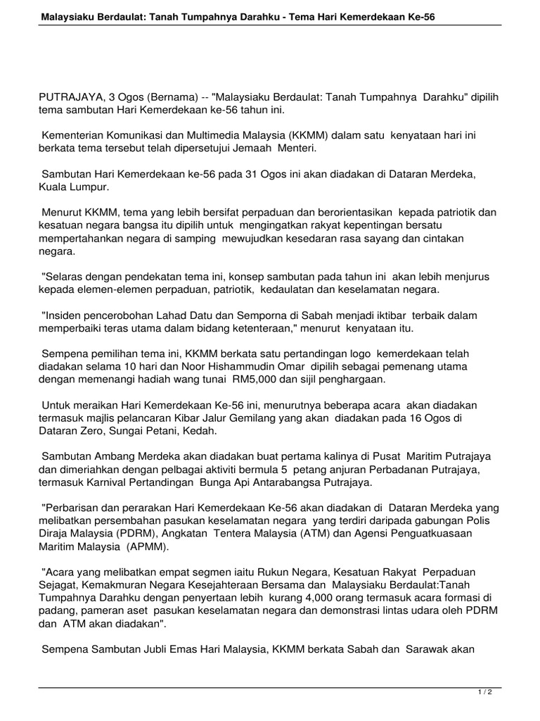Pdf Tema Sambutan Hari Kemerdekaan Ke 56 Hootoh Tudia Academia Edu
