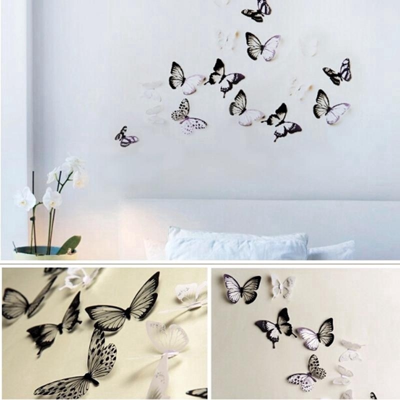 18pcs Stiker Dinding Decal Desain Kupu Kupu 3d Warna Putih Hitam